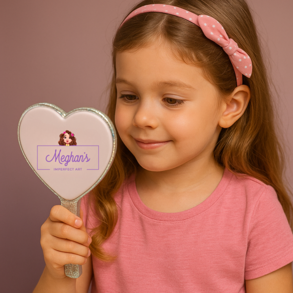 Make every moment sparkle with Meghan’s Heart-Shaped Mirror! ✨ Perfect for girls who love a little glam, this handheld mirror features a dazzling rhinestone border and a comfortable handle. Compact, stylish, and lightweight, it’s ideal for quick touch-ups at home or on the go. A charming accessory for every princess! 👑
